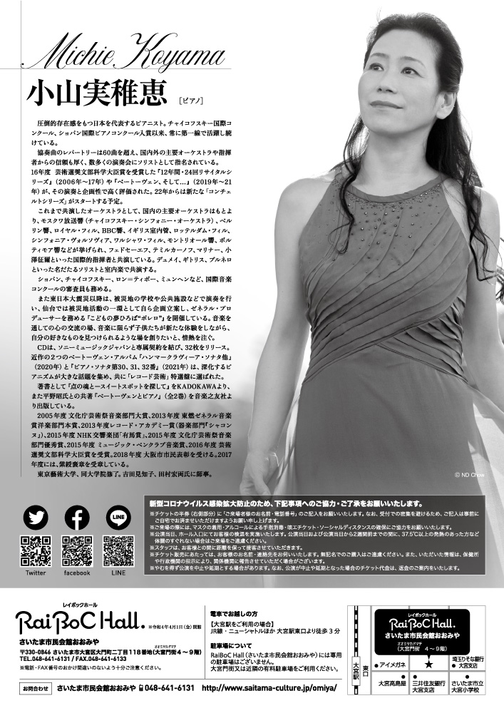 今回は小山実稚恵さんのピアノリサイタルのフライヤーを作成させていただきました。